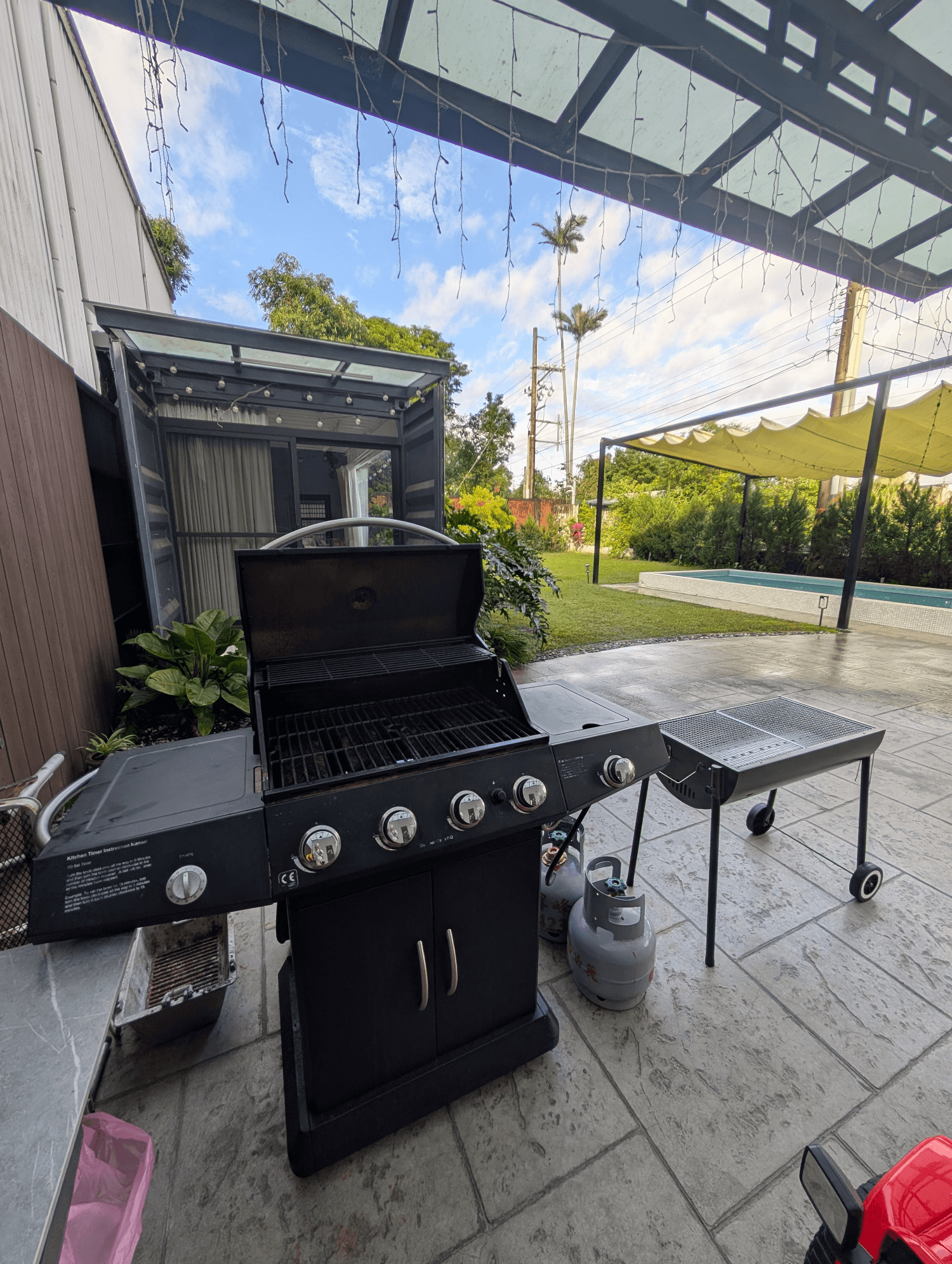 獨立泳池:水深 40–70 公分,孩童需大人全程陪同,安全最重要。戲水樂趣:現場提供戲水遊具與電動打氣機,泳具、泳衣、毛巾請自備。封閉草坪:設有安全閘門,毛孩同行也不用擔心逃跑。烤肉區:瓦斯型美式烤肉爐、落地炭烤爐及遮雨棚,與家人或朋友共享戶外美味。貼心設備:提供洗衣機可脫水,玩水後輕鬆整理衣物。無論是嬉水、奔跑還是烤肉聚會,這裡都是屬於你專屬的歡樂時光。